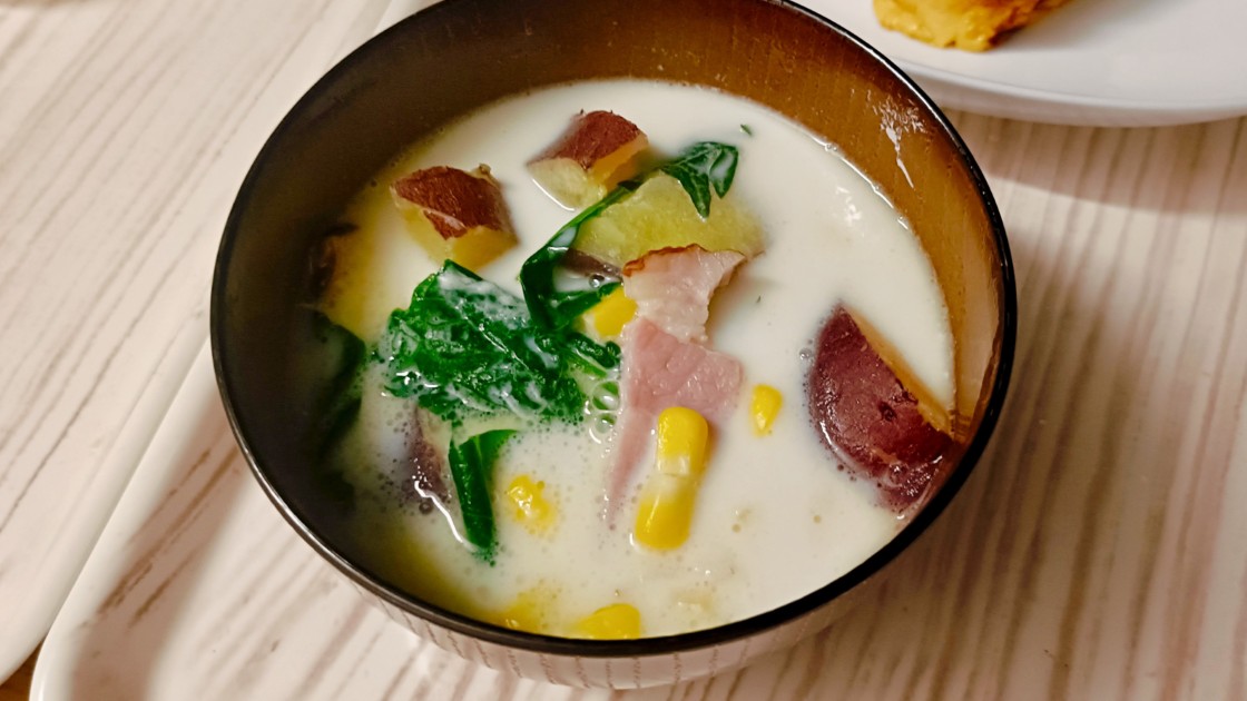 さつまいもの甘みが、コンソメやベーコンの塩気でぐっと引き立ちます。