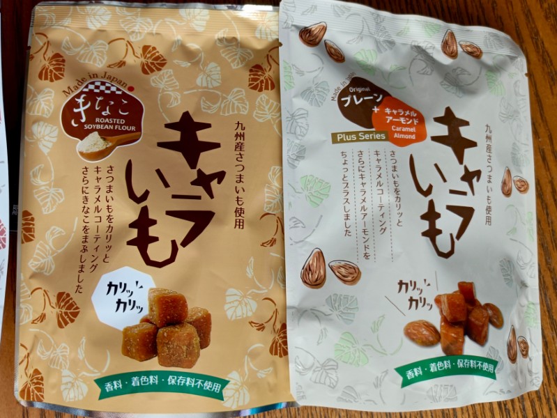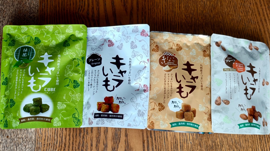 先日、気になっていた「キャラいも」を4種類(プレーン、きなこ、抹茶、アーモンド)購入しました。