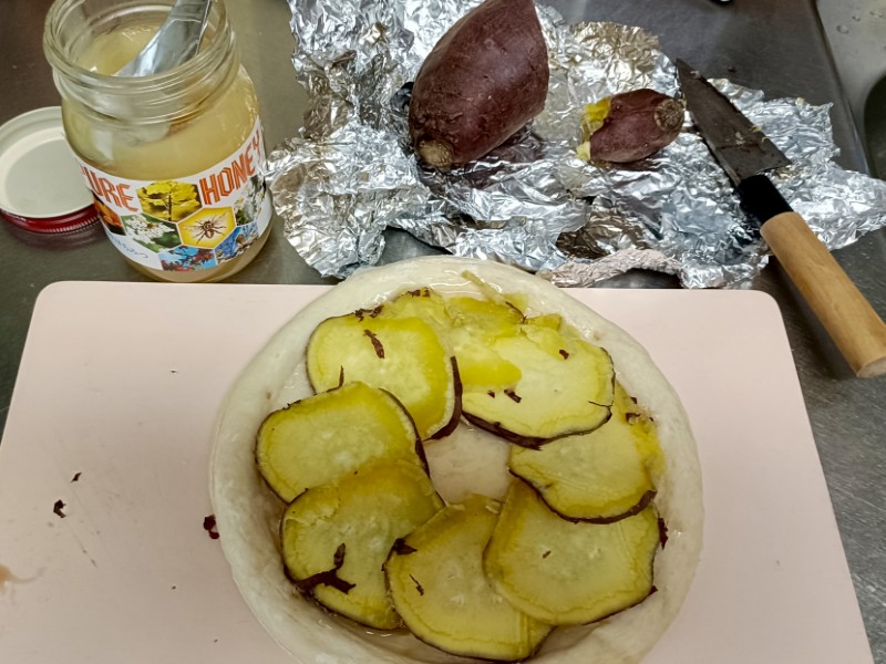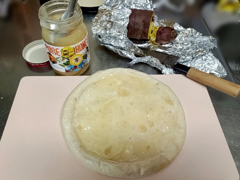 生地にはちみつを塗り、お芋をいい感じに並べます。