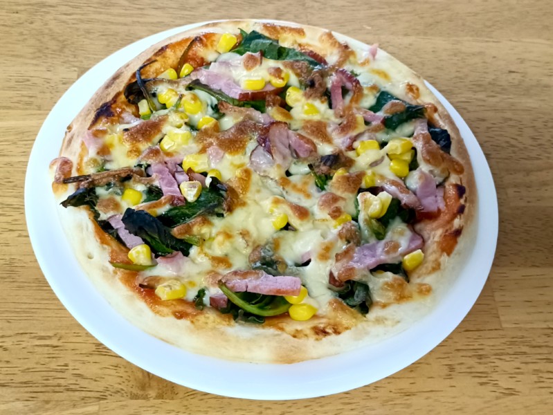 ほうれん草ベーコンピザ