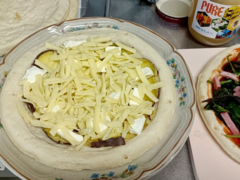 他にもシーフードピザ、ネギと枝豆の味噌ピザ、ほうれん草ベーコンピザをつくりました。