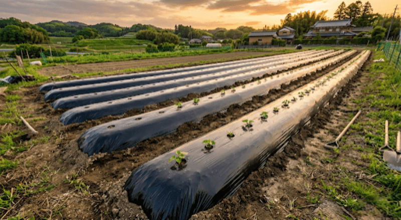 休憩なしでは終わらない畝(うね)立てとマルチ貼り