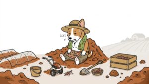 コーギー店主今日も畑をパトロール。コーギー店長です。