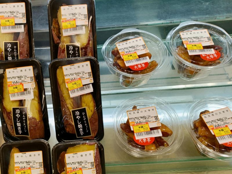 別のコーナーでは、なんと「冷やし焼き芋」と「紅天使の大学芋」に半額シールが貼られているではありませんか!